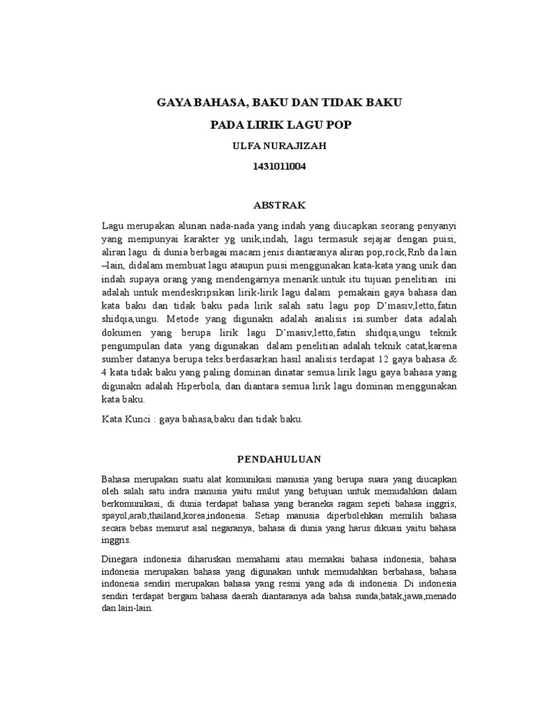 Jurnal Analisis Lirik Lagu Pop Pdf